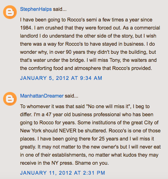 The traditional Italian restaurant Rocco in Greenwich Village has closed due to “greedy landlords,” as Rocco’s owner Antonio DaSilva says on the now-defunct restaurant’s voice greeting.